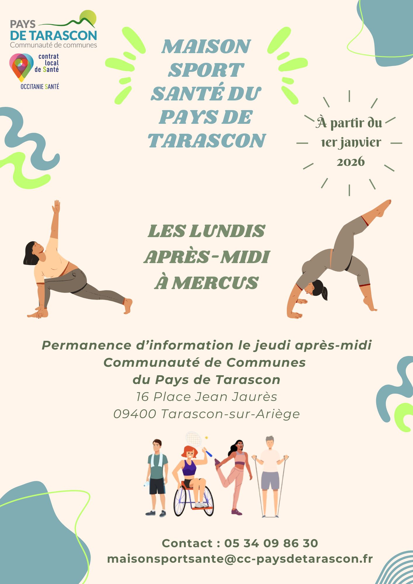 Activités de la Maison Sport Santé du Pays de Tarascon les lundis après-midi à Mercus à compter du 1er janvier 2026