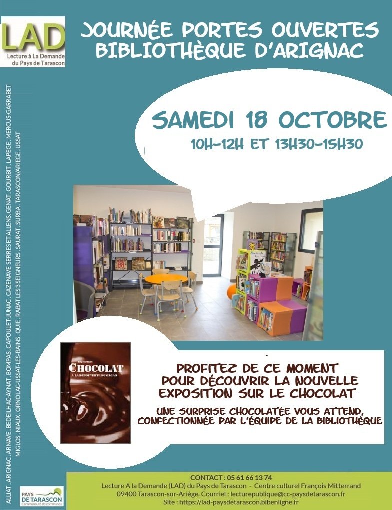 Journée Portes Ouvertes à la Bibliothèque d'Arignac de 10h à 12h et de 13h30 à 15h30.