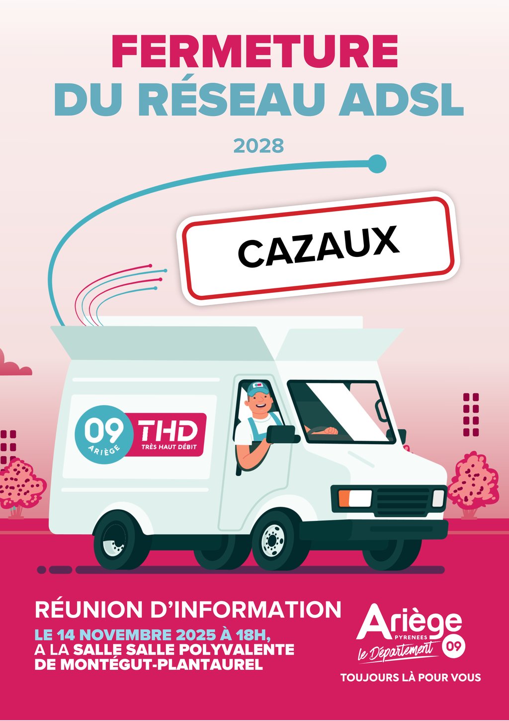 Dans le contexte de la fermeture du réseau ADSL sur le territoire ariégeois, la Présidente du Conseil Départemental, Christine TEQUI, vous invite à une réunion d’information organisée avec votre collaboration, ainsi que celle des communes concernées sur votre circonscription. Destinée aux habitants des communes de Montégut-Plantaurel, Aigues-Juntes, Monesple, Pailhès, Loubens et Cazaux, celle-ci aura lieu :